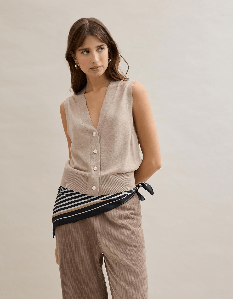 Para os dias mais frescos, que ainda se fazem sentir, os casaquinhos de malha continuam a ser uma aposta segura. Os coletes, que têm estado em altas, são perfeitos para conjugar com camisas ou t-shirts e dar um toque mais cool ao outfit.