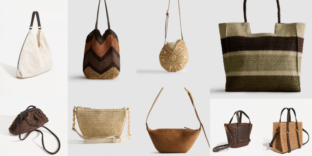 Nesta altura, destacam-se vários tipos de malas que se adaptam a diferentes momentos. As tote bags continuam a ser uma das escolhas mais práticas, graças à sua versatilidade e espaço. As mini bags mantêm-se como tendência, enquanto as malas de ombro são um clássico intemporal. Já as malas de palha e os modelos em materiais naturais ganham cada vez mais protagonismo.