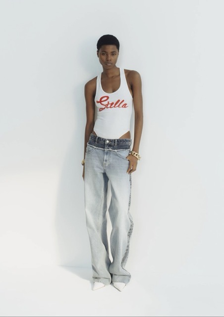 Inspirada em 25 anos de percurso da casa Stella McCartney, a proposta é o cruzamento do passado e do presente. Isto é, há peças que remetem diretamente para o arquivo, como os tops com logótipos ou os estampados adornados, ao mesmo tempo que surgem silhuetas contemporâneas, pensadas para o ritmo frenético dos tempos de hoje, como camisas oversized, sobretudos estruturados, vestidos de festa, denim e coordenados de malha com a icónica corrente Falabella incorporada.