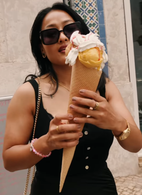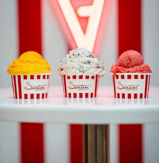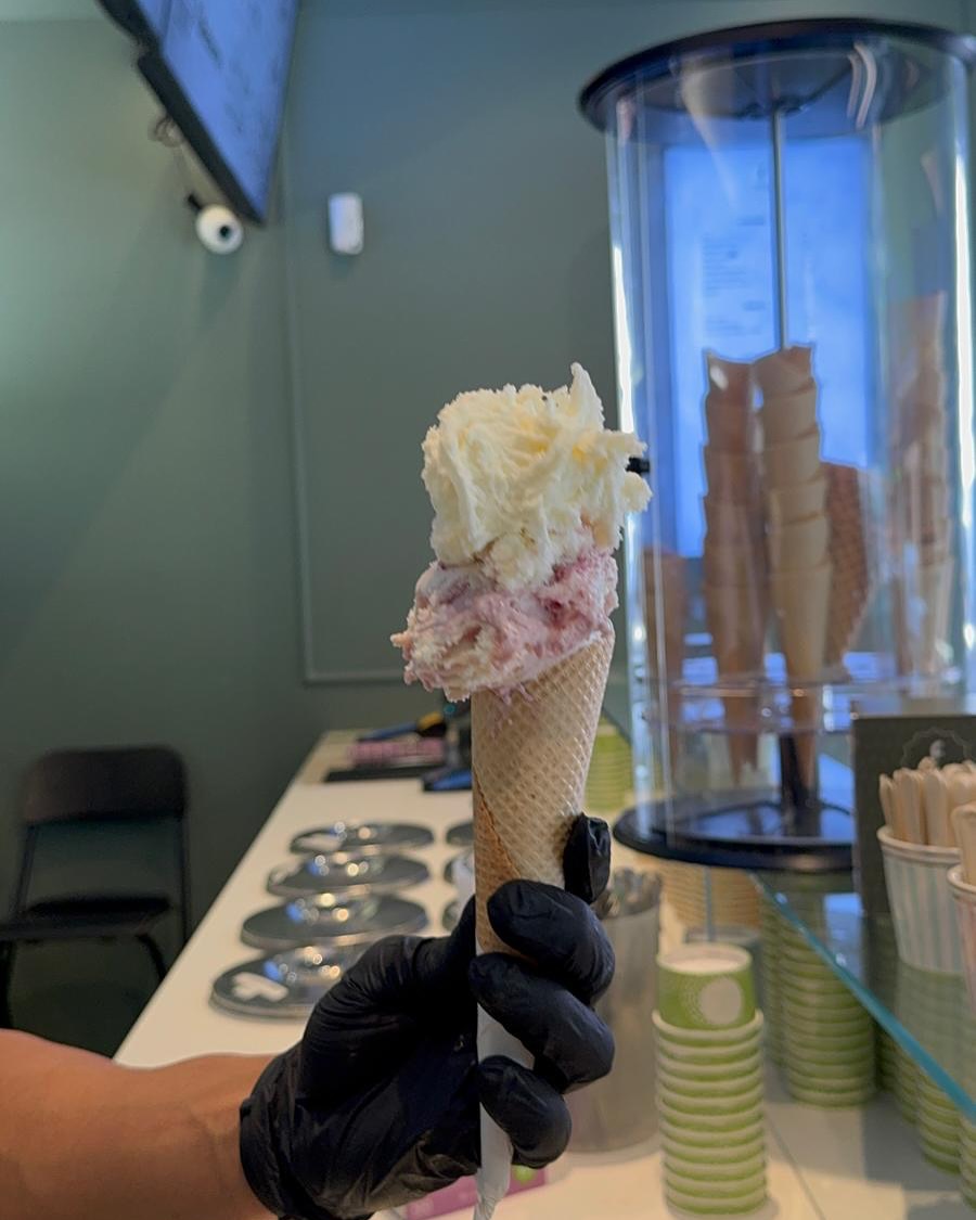 Pode comer gelado pequeno (3,90€), médio (5,40€), grande (6,90€), hambúrguer de gelado (4,50€) ou cone XXL (12€) que pode levar até seis bolas de gelado com sabores de manteiga de amendoim, pistáchio, tiramisù, caramelo salgado, cereja preta, baunilha, manga, chocolate de leite ou até mesmo kiwi e matcha. Se preferir, pode levar para casa uma caixa de gelado pequena (17€) ou grande (29€).