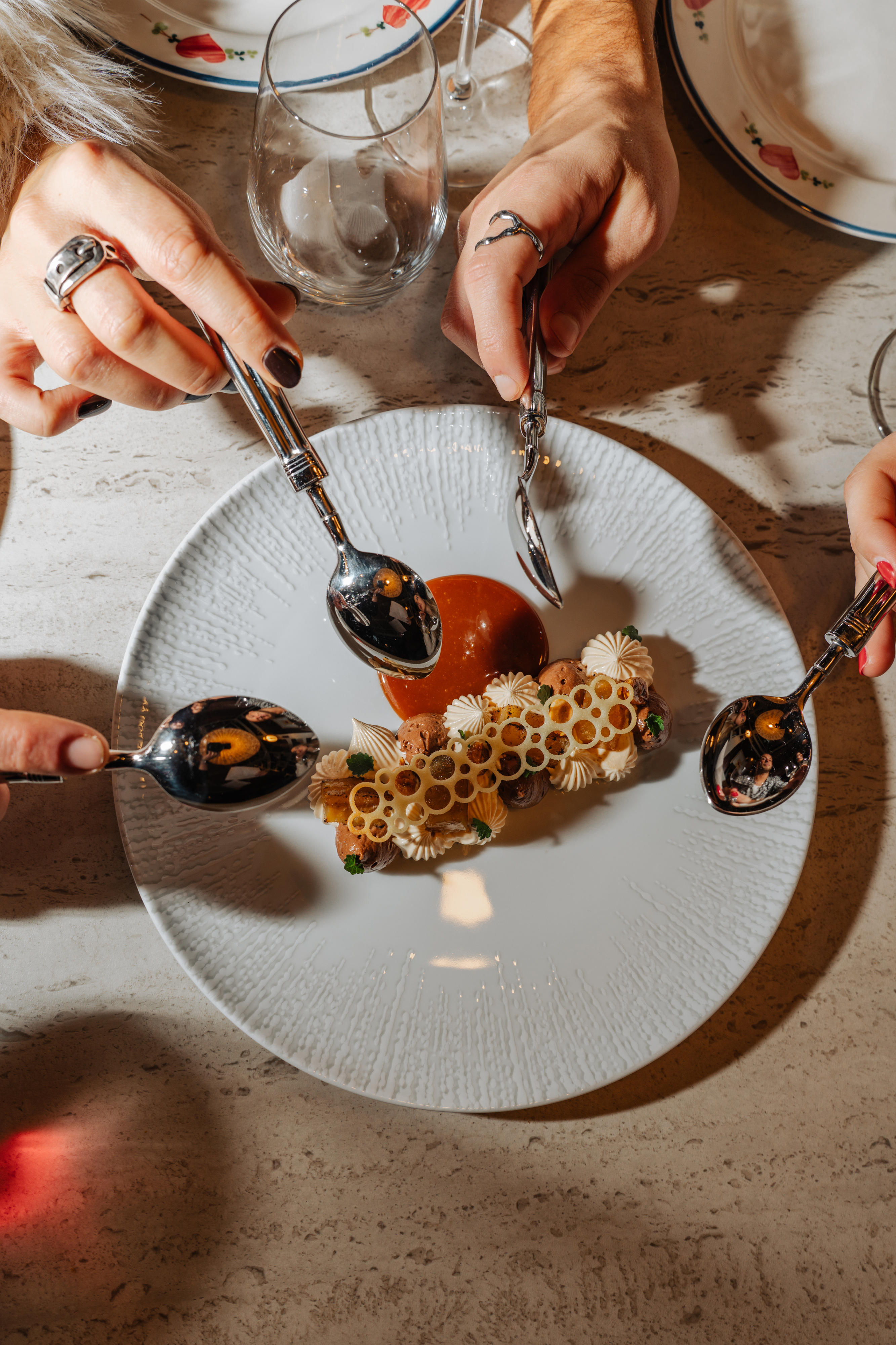 Para adoçar a boca, a carta do Cais–me Bem conta com a le feuilletine, um doce crocante com avelã, chocolate e banana da Madeira (10€), a tartelete de limão, toranja e manjericão sem glúten (9€) ou a “rota das ilhas”, que junta polpa de abacaxi, texturas de coco e aroma de aguardente (8€).