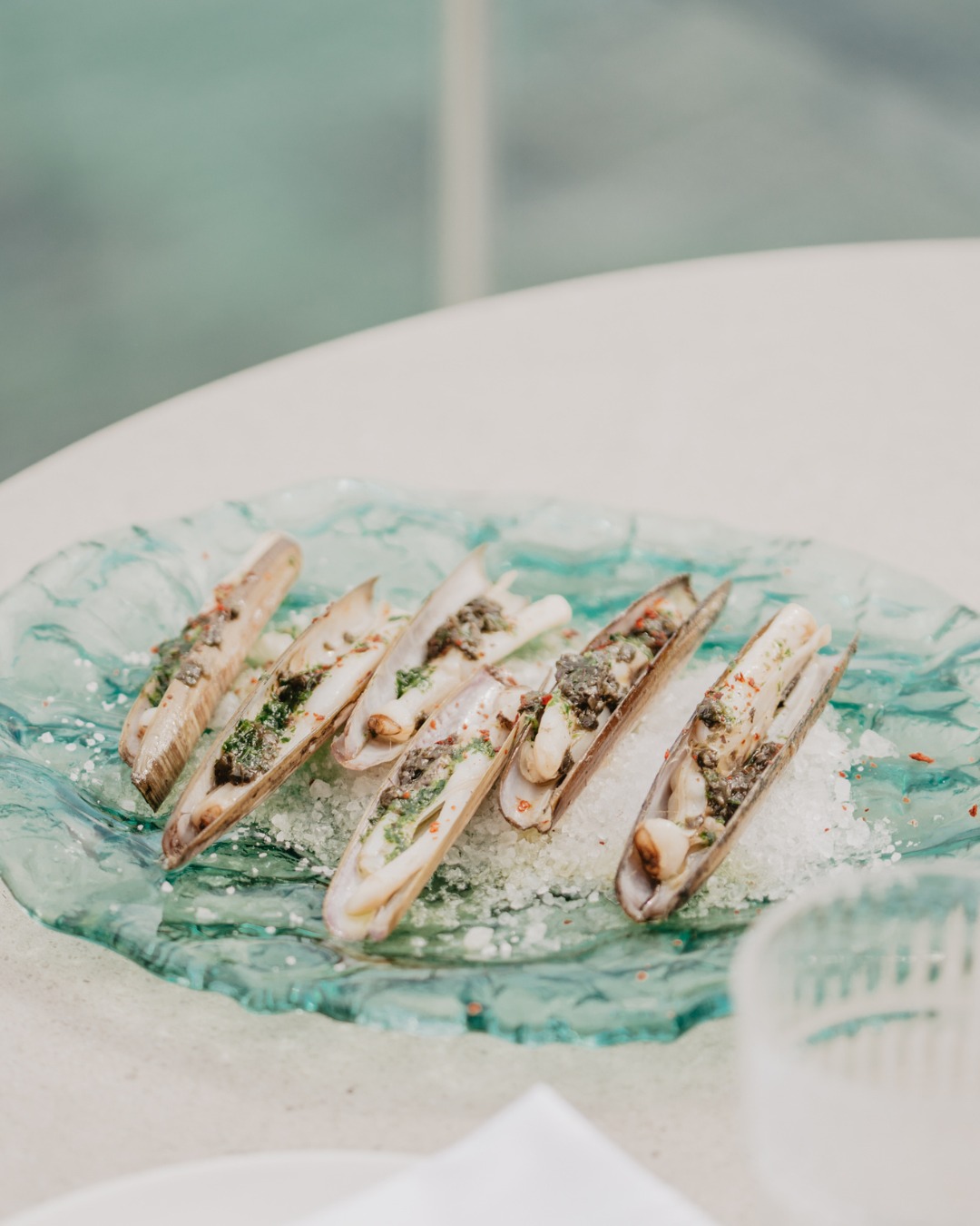 De entradas para partilhar tem croquetes de presunto ibérico de bolota (10,80€/3un), atum bluefin marinado com ponzu, kimchi e gema curada (26,30€), amêijoas grelhadas ao estilo galego com alho e salsa (22,70€) e burrata com batata doce assada, mel quente e amêndoas (19,70€).