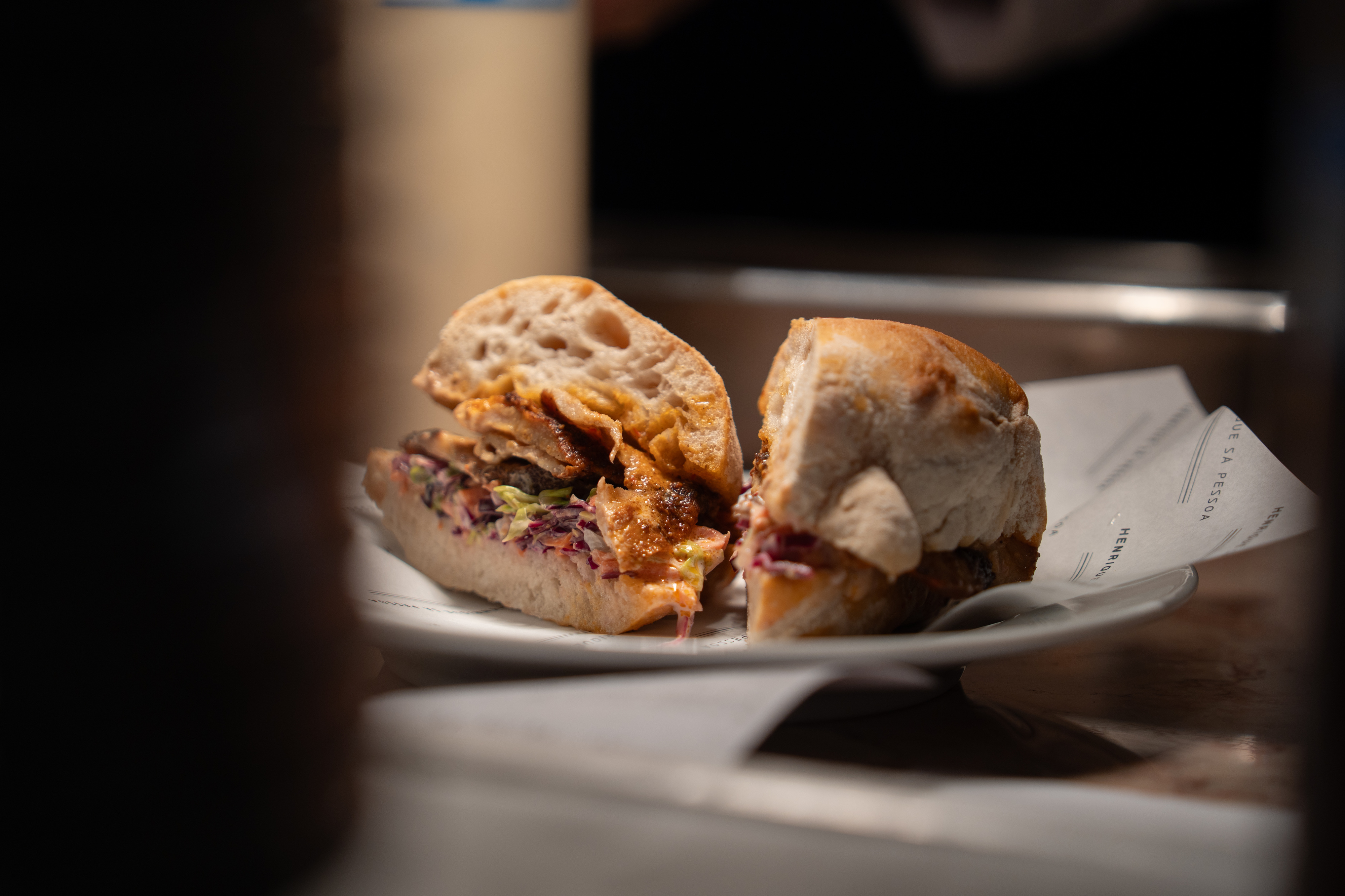 O primeiro foi a bifana de secretos de porco preto marinada com temperos típicos da vinha d’alhos e ao estilo kimchi, um tempero coreano fermentado (11,50€) – e saiba que se se é fã de bifanas como nós, esta proposta promete conquistá-lo de início ao fim.