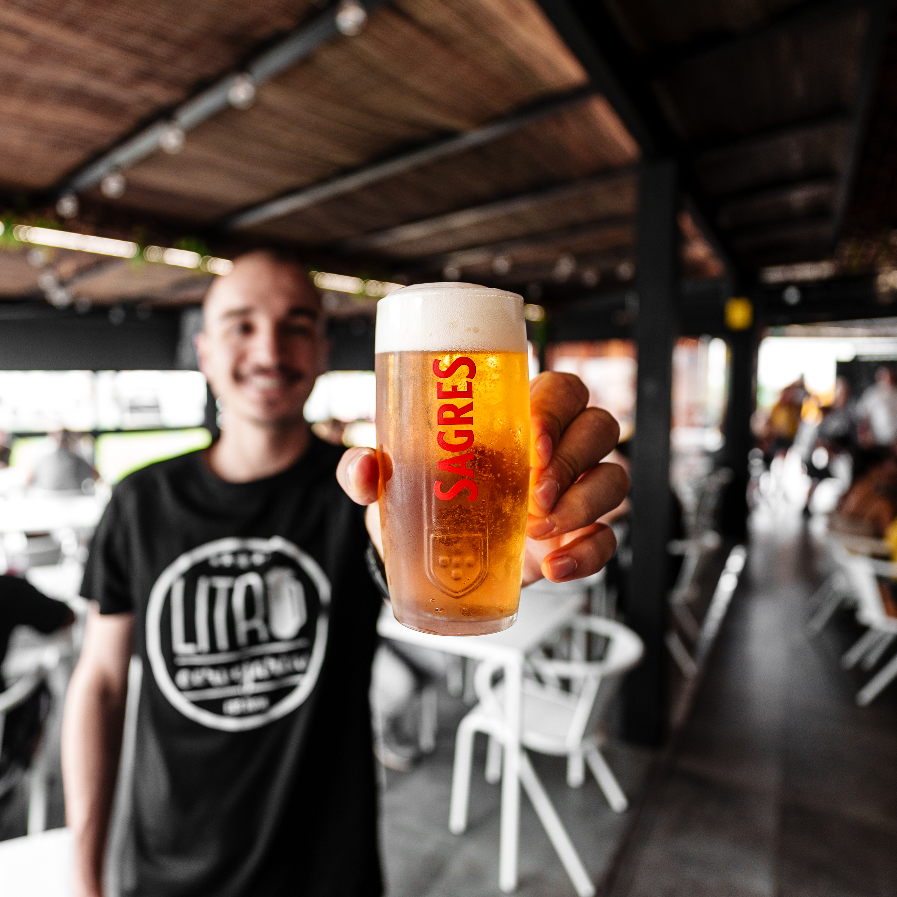 O conceito é simples e acaba por ser parte da experiência. Em vez do tradicional jarro de cerveja, “o litro” chega à mesa dentro de uma caixa de madeira com seis copos frescos que, no total, perfazem precisamente um litro. O ritual repete-se mesa após mesa: distribuem-se as cervejas, chegam os petiscos para partilhar e a conversa começa a ganhar ritmo.