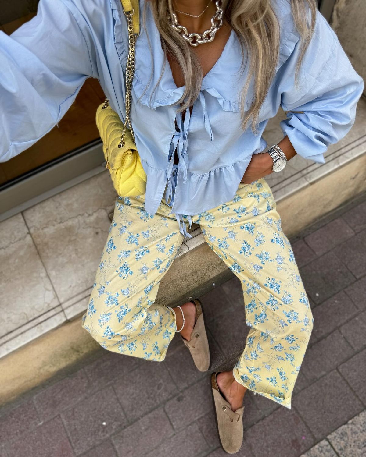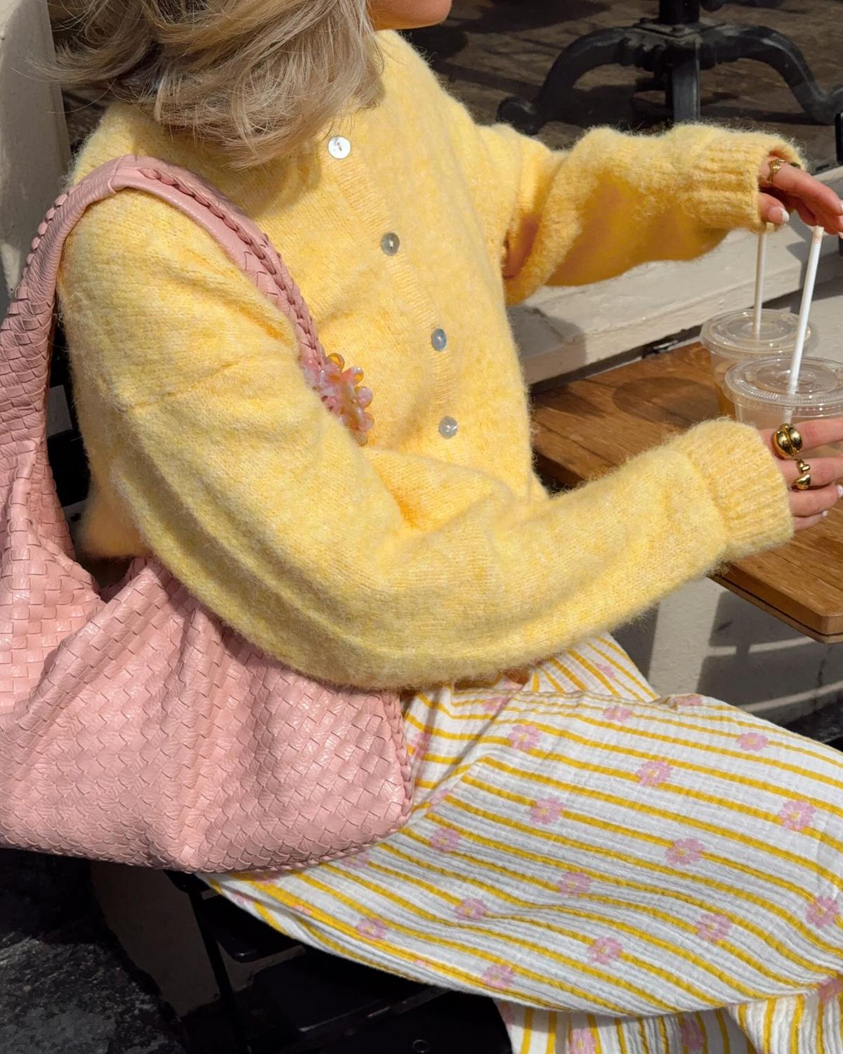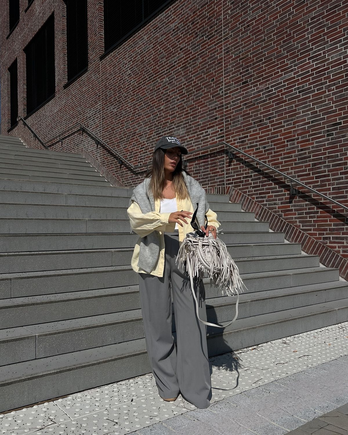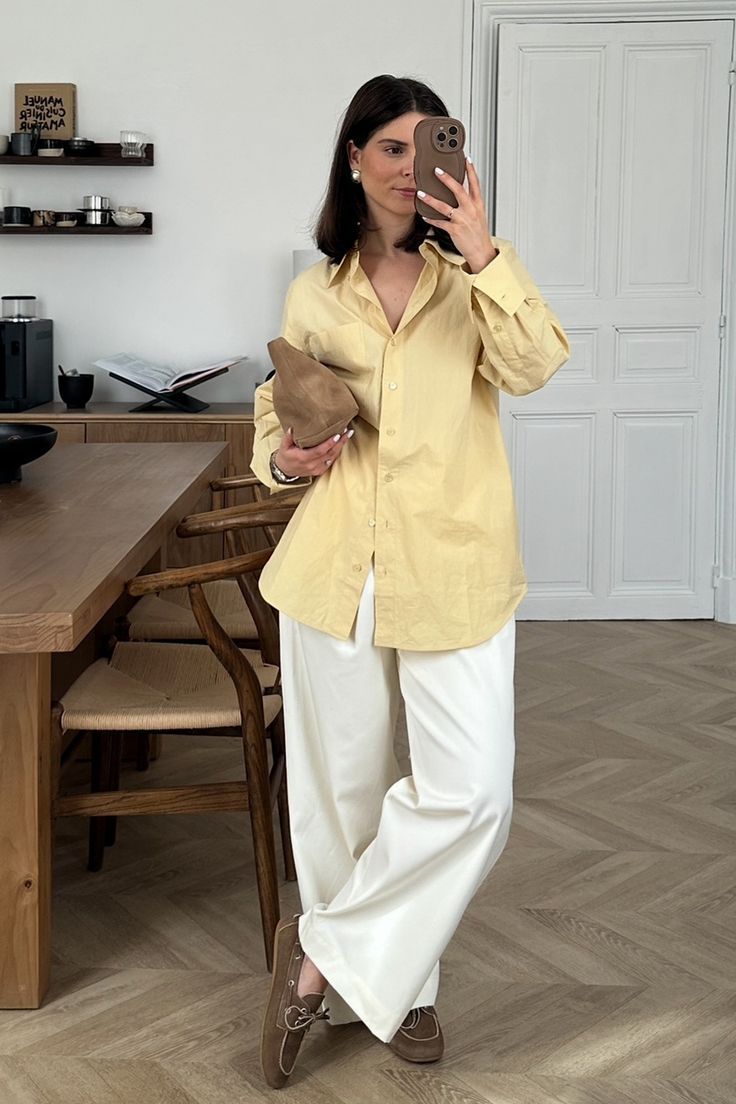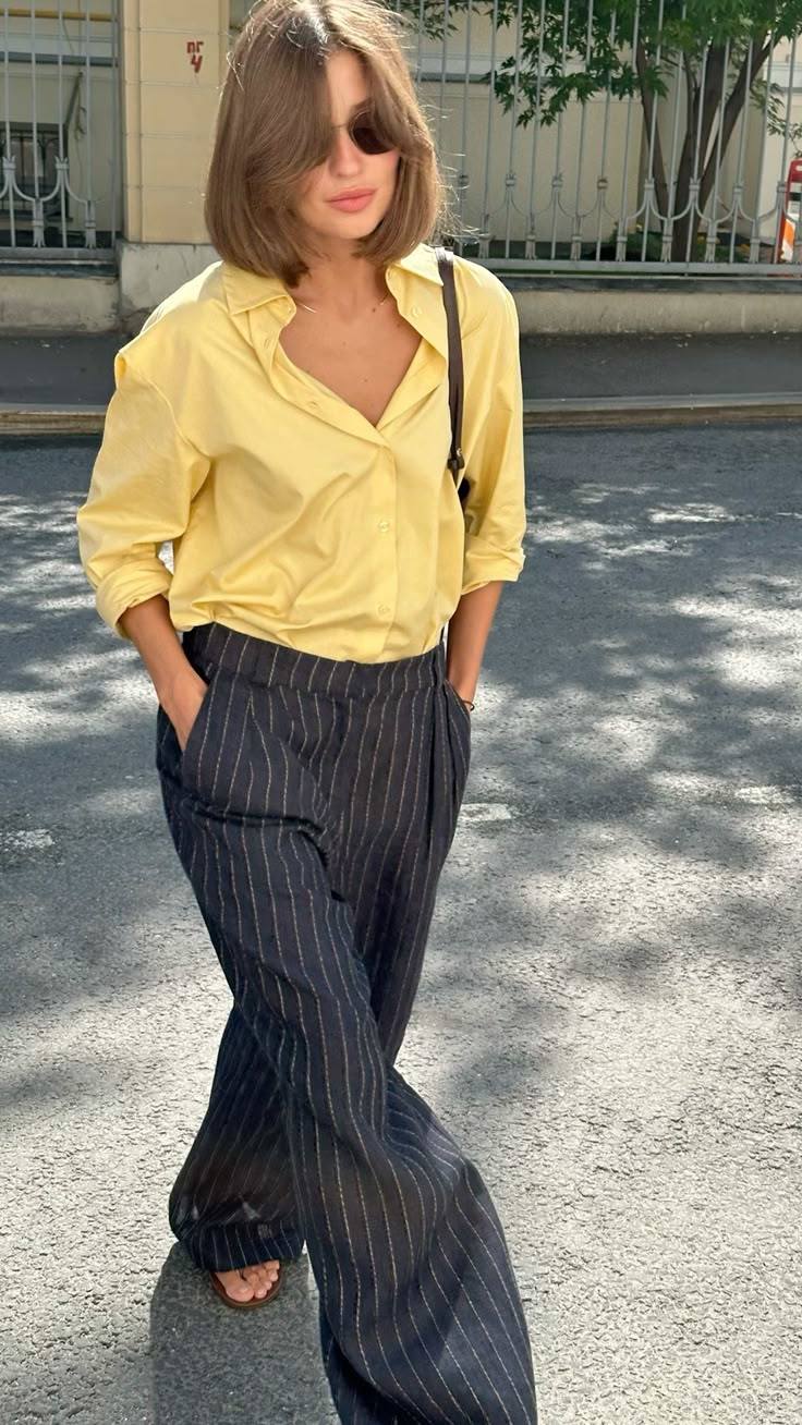 Esta evolução é reflexo do ritmo frenético a que as tendências se consolidam, que faz com que cresça também a vontade de reinterpretá-las. E o amarelo manteiga, sendo uma base neutra disfarçada, permite precisamente brincar, testar e sair da zona de conforto sem grandes riscos. As referências mais recentes da moda mostram exatamente esse caminho.