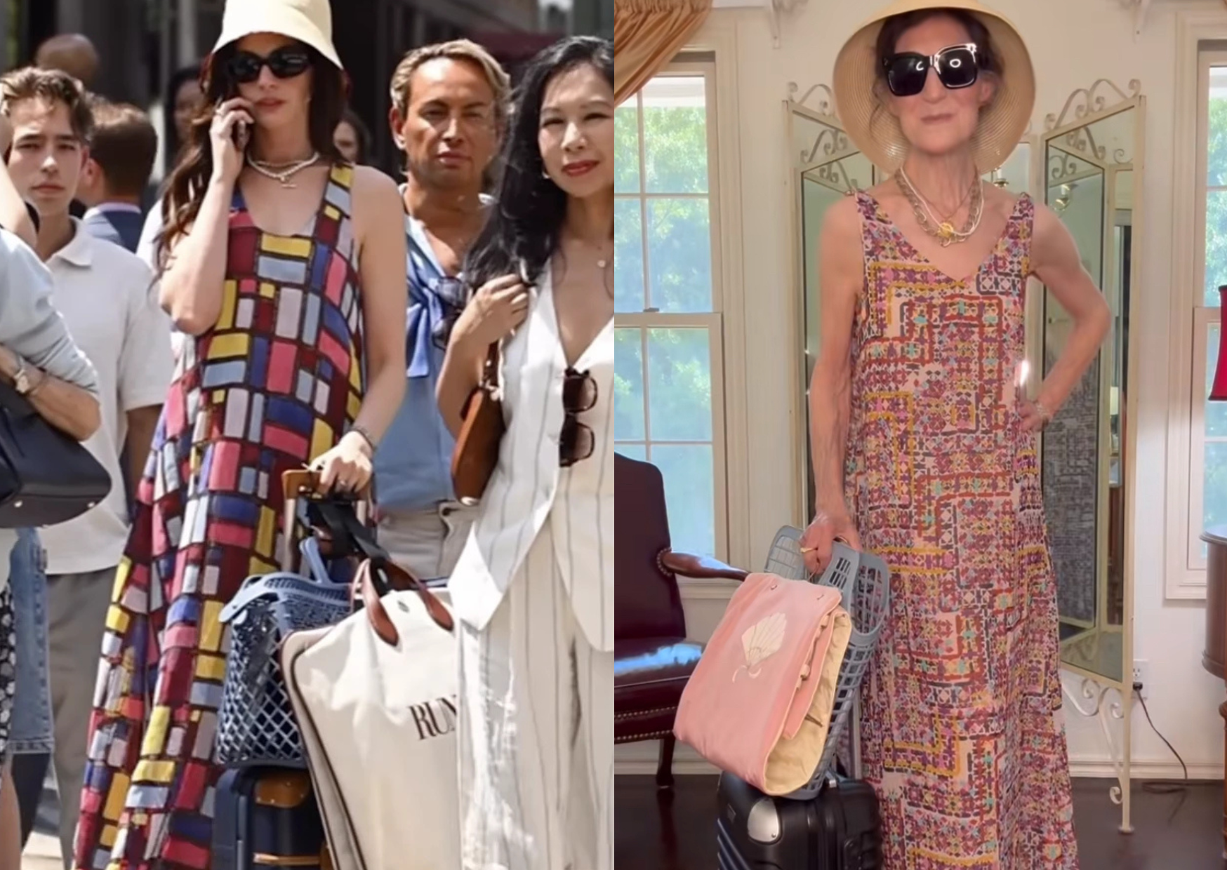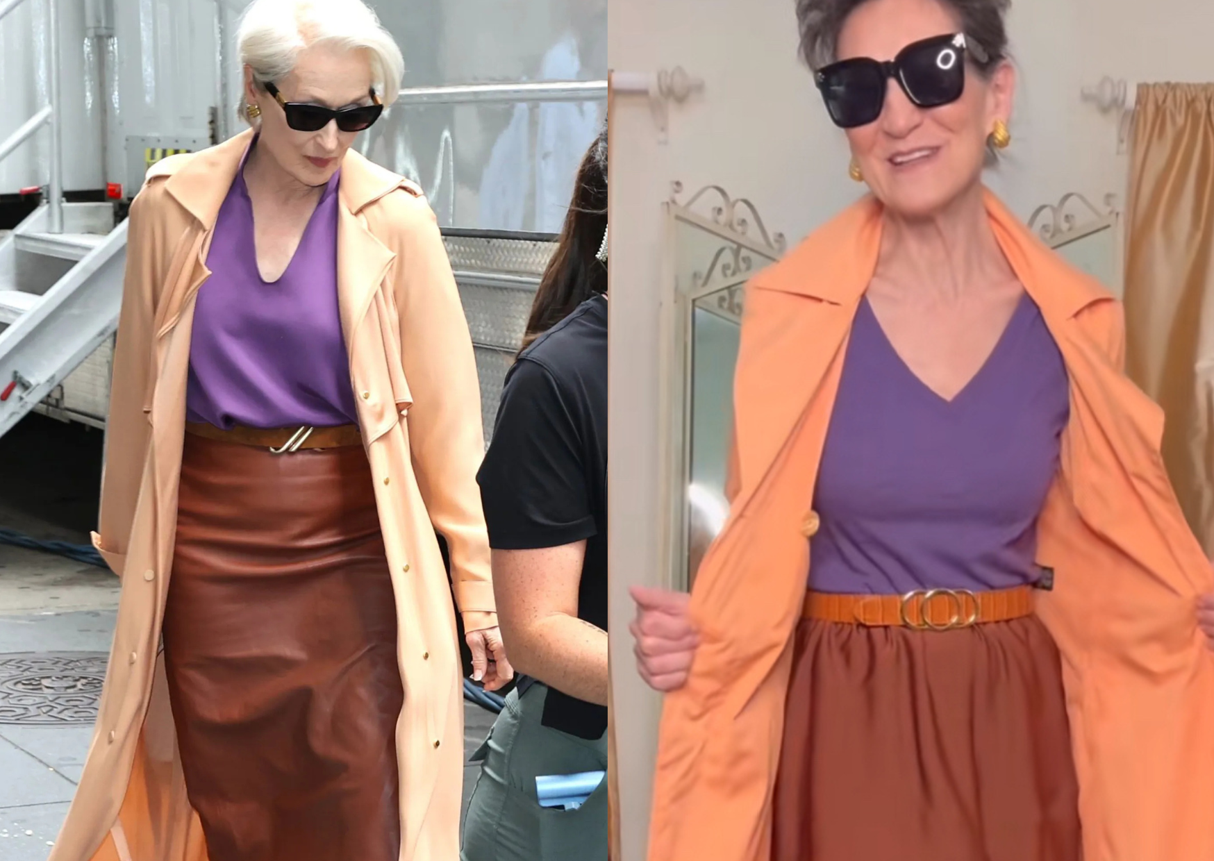 Para além de toda esta sensibilidade e bom gosto, Cathy também tem um talento especial que encanta ainda mais os seguidores: recriar looks icónicos de celebridades, como Anne Hathaway, Meryl Streep ou Demi Moore, ou marcas, usando apenas o que tem em casa. Cada vídeo é uma espécie de desafio criativo, em que peças simples ou já existentes ganham nova vida. Reunimos algumas das fotos destes momentos.