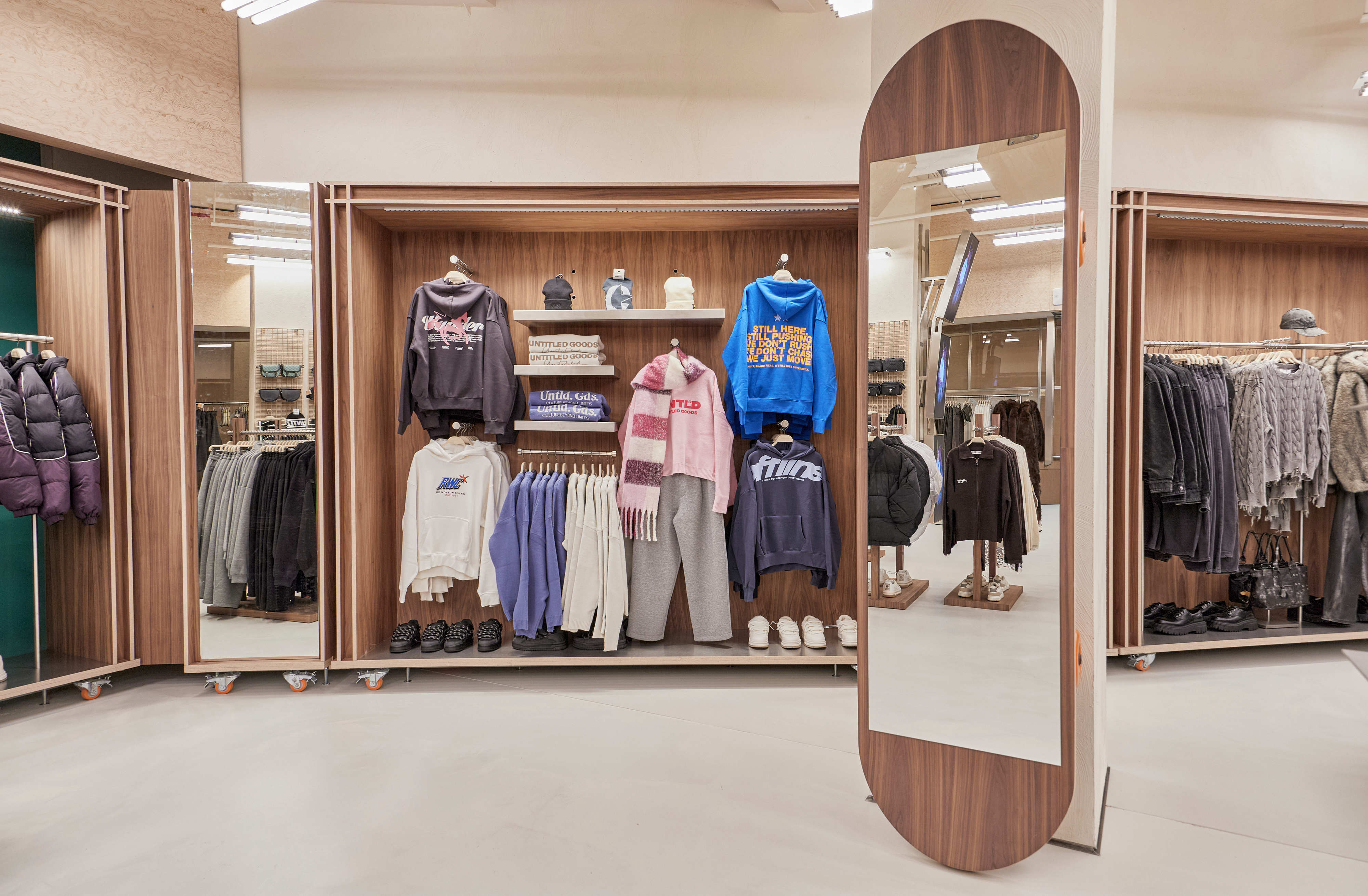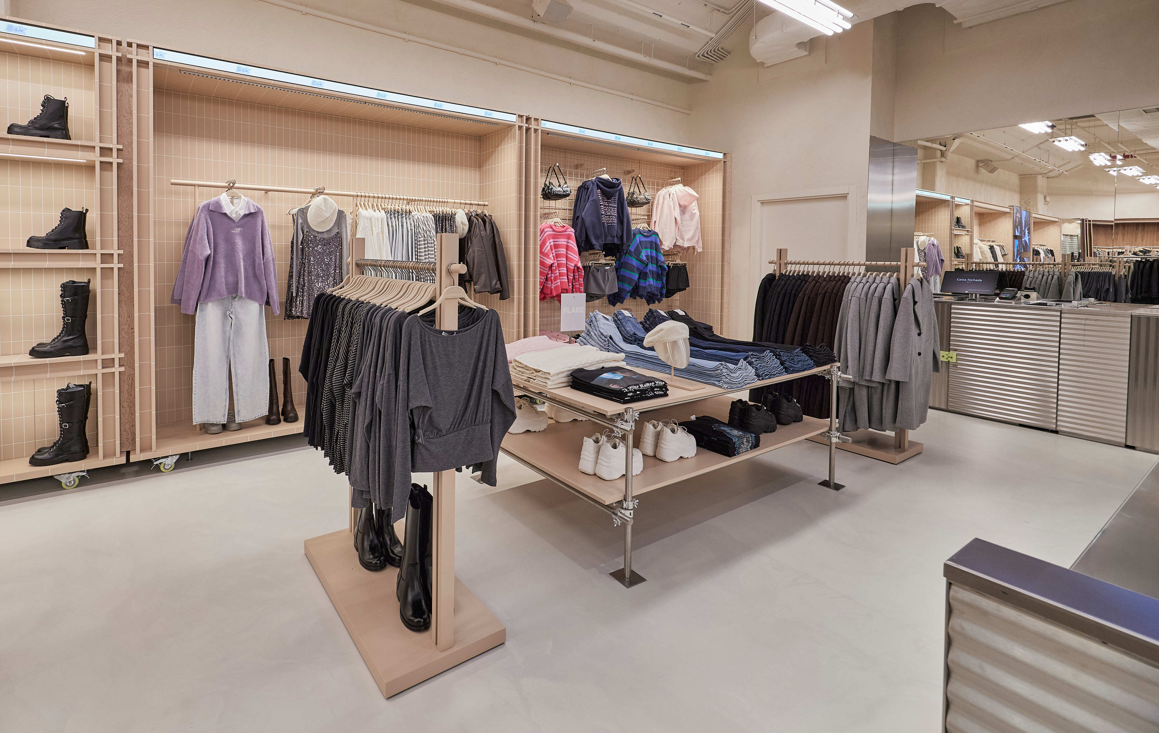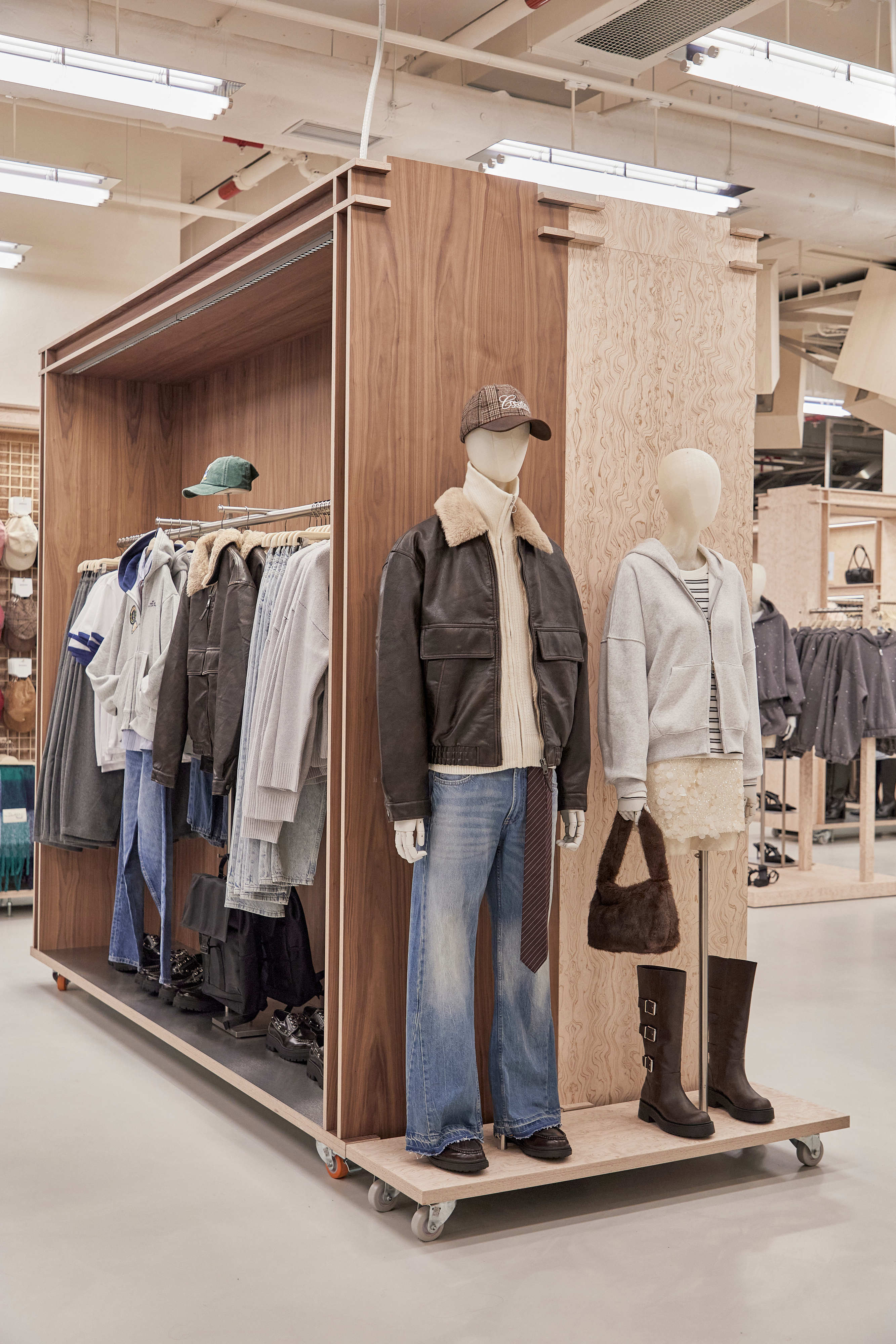 A coleção feminina destaca-se pelas madeiras e acabamentos metálicos, enquanto a secção masculina aposta em tons neutros e elementos industriais.