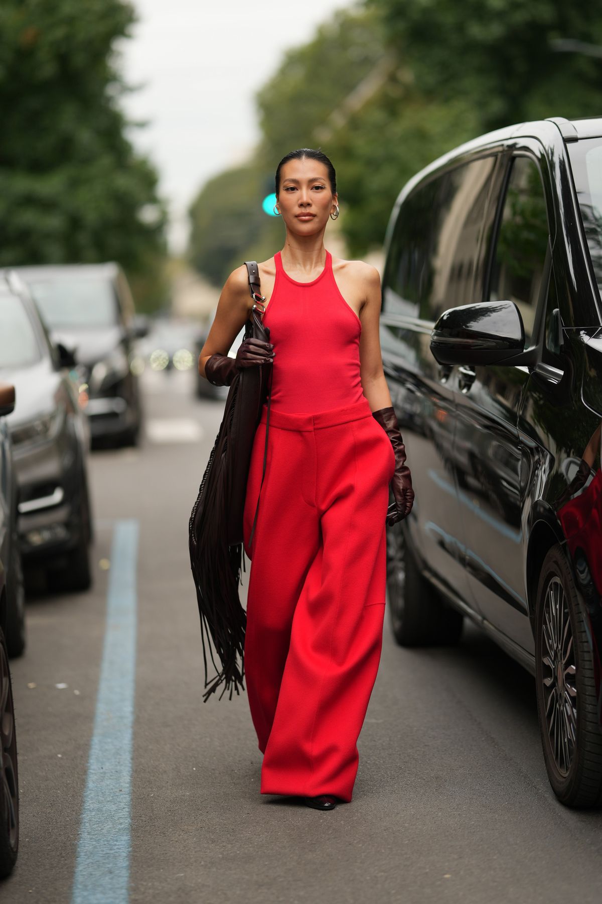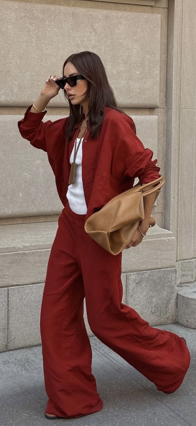 A verdade é que não há uma forma correta ou única de o usar e talvez seja isso que o torna tão apelativo nesta fase de transição entre estações. Fomos à procura de looks de inspiração que mostram exatamente isso: diferentes formas de integrar este vermelho no guarda-roupa, das mais discretas às que não passam despercebidas.