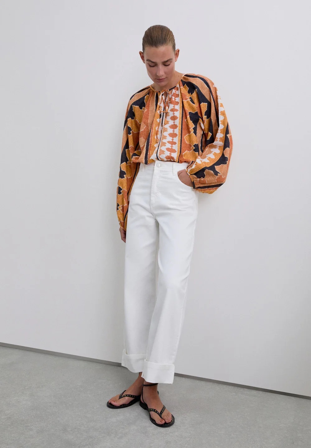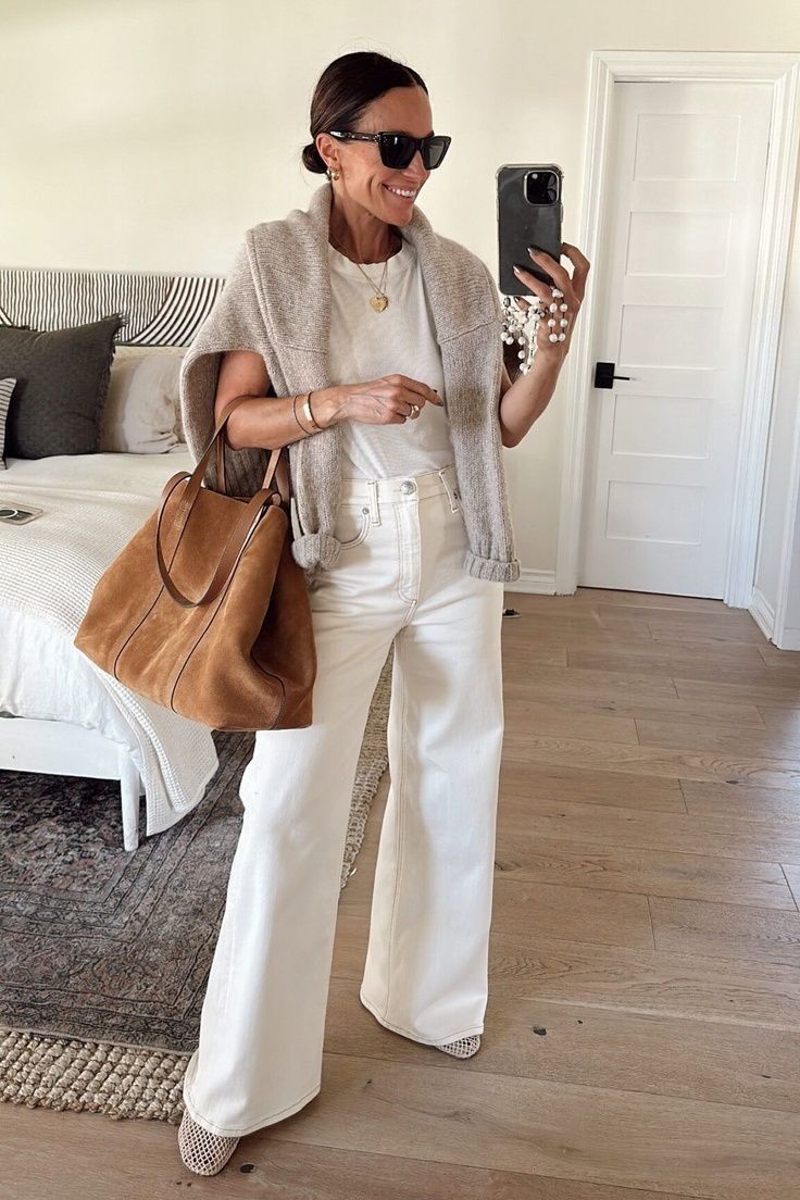 O segredo, como em tudo na vida, está no styling. Resultam especialmente bem com malhas finas, camisas oversized ou blazers estruturados em tons neutros, como bege, castanho, cinza ou até preto. O contraste cria profundidade e afasta imediatamente a associação ao verão. Já para quem prefere um registo mais descontraído, uma T-shirt branca, sapatilhas minimalistas e acessórios bem escolhidos também servem.E uma vez que falamos de calças, os cortes também não são de descurar. As versões de perna larga continuam em alta e favorecem quase todos os tipos de corpo, enquanto os modelos direitos oferecem um ar mais clássico e intemporal. As calças brancas de cintura subida são outra aposta segura, sobretudo quando combinadas com peças curtas ou usadas por dentro, alongando a silhueta.