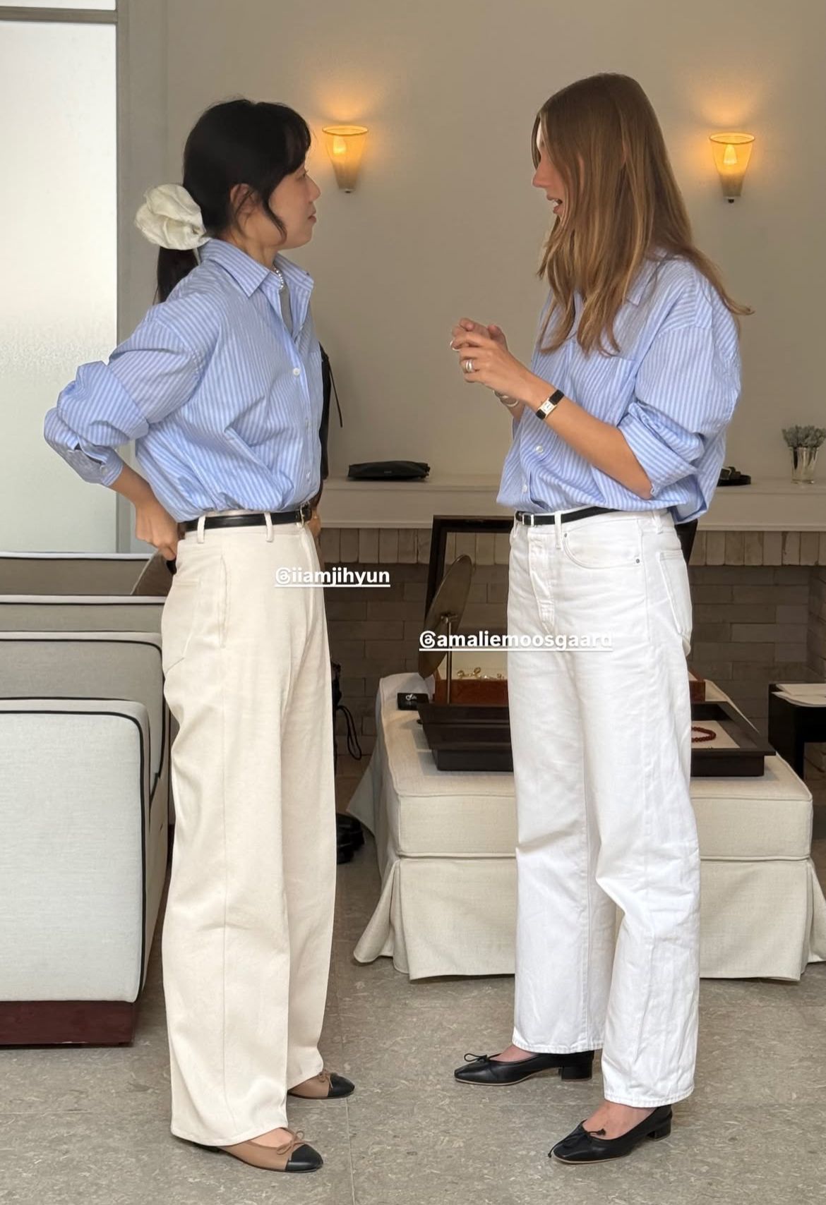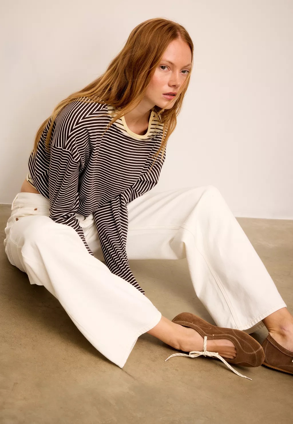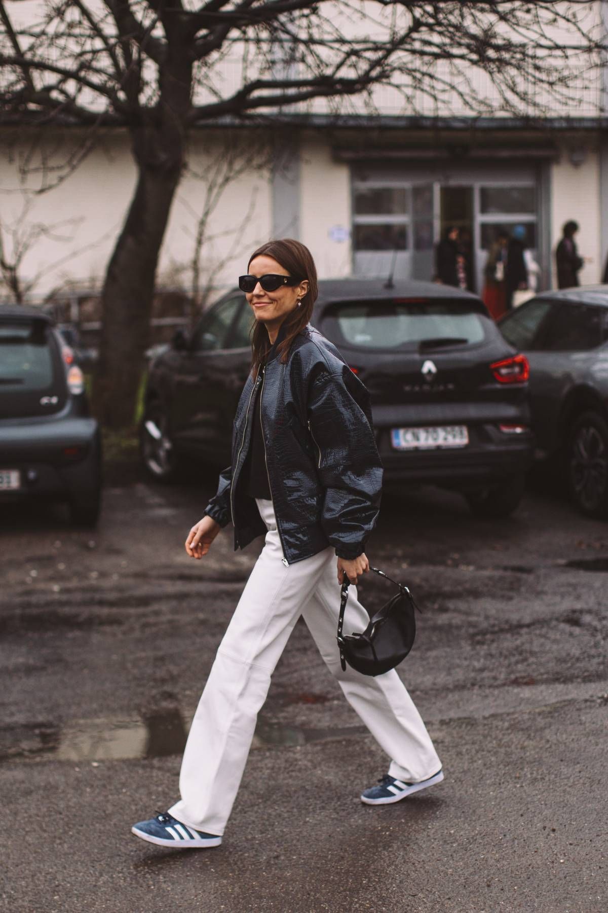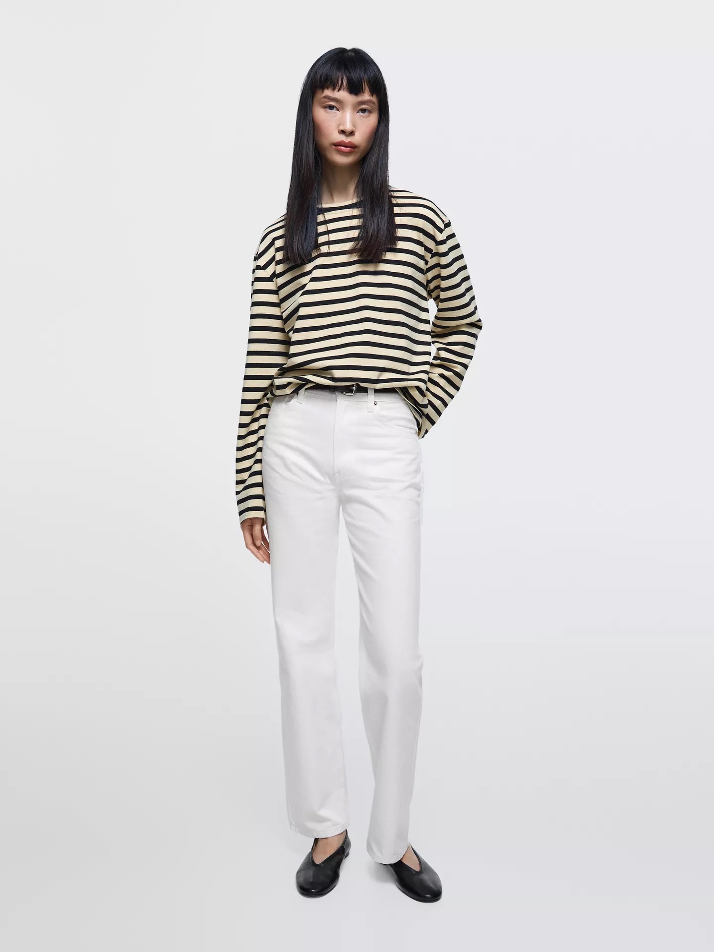 Quanto aos sapatos, há margem para experimentar. Mocassins, sabrinas, sandálias minimalistas ou até botas de meia-estação funcionam, desde que o conjunto mantenha coerência. A ideia não é parecer pronta para a praia, mas mostrar que o branco também vive (mais do que) bem fora dos meses quentes.