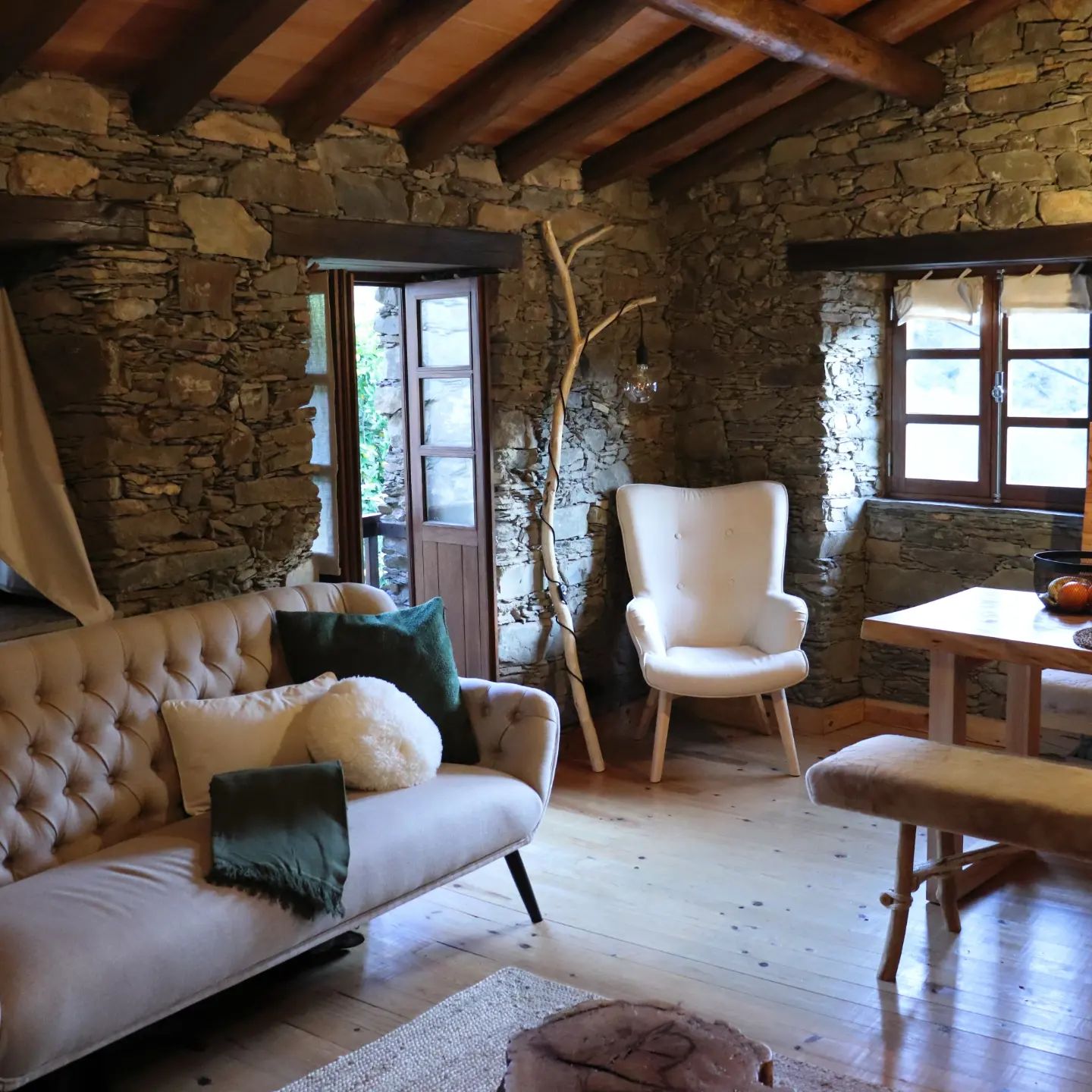 “Nos pisos térreos, onde se encontram os quartos e casas de banho, aí não existia a possibilidade do aquecimento a lenha, então temos o aquecimento elétrico sempre em funcionamento durante a estadia, devidamente programado. Na parte da sala e cozinha, o aquecimento é feito apenas com a lenha que é também característico nestas casas”, afirma Luís Lopes.